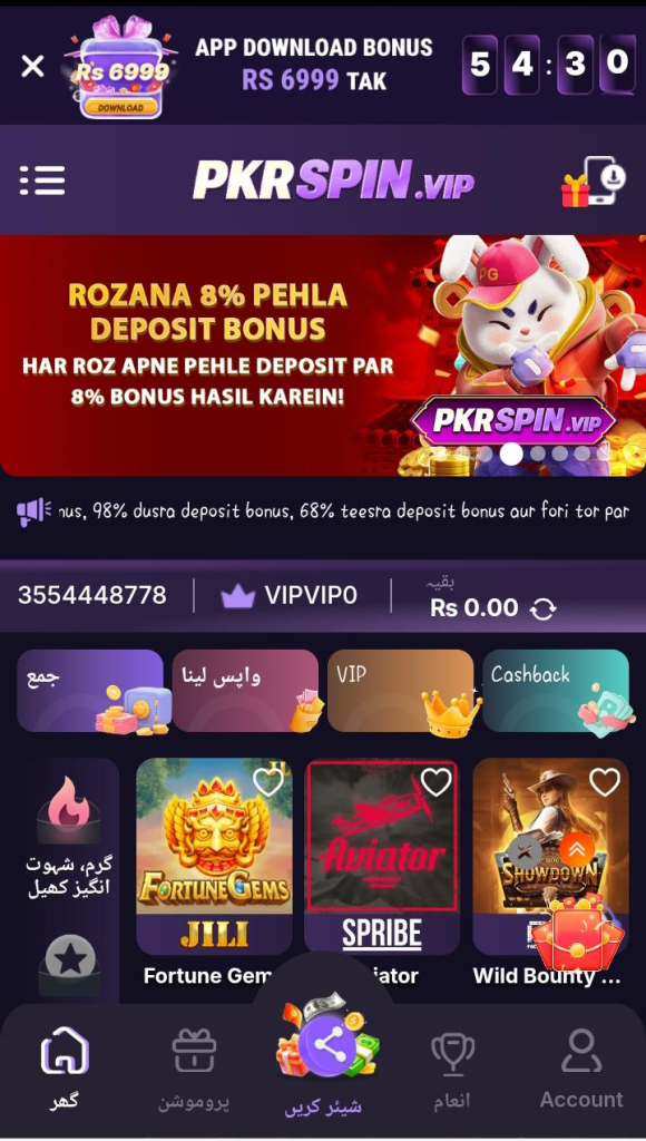 PKR Spin Game is built as a mobile-first platform, meaning the entire experience is optimized for smartphone users. The app interface is clean, colorful, and easy to navigate even for users who are not particularly tech-savvy. When you open the app, you’re greeted with a dashboard showing your current balance, available games, ongoing promotions, and quick access to deposit and withdrawal options.